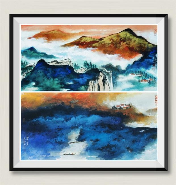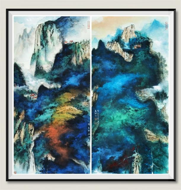 俞关佑的艺术创作,以“传统为根,创新为魂”,核心在于将中国画经典泼彩技法与现代抽象艺术表现力深度融合,构建出兼具磅礴气势与细腻肌理的独特视觉语言。其泼彩山水画尤为出众,既承袭传统文人画的雅致意境,又融入现代审美表达:通过泼彩的灵动洒脱与勾染的精谨细腻相映成趣,于尺幅之间营造出云雾氤氲、峰峦叠翠的壮阔景致,作品既显山河壮丽的恢宏气象,又藏笔墨氤氲的文人韵味,形成“大气磅礴不失清雅,抽象写意不离传统”的鲜明艺术风貌。