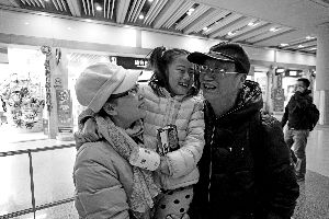 昨晚,乘坐CA1336航班抵京的夏女士和老伴刚一下飞机,就高兴地与前来迎接的孙女拥抱在一起。