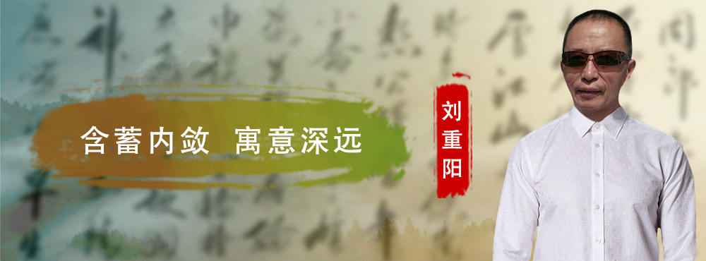 刘重阳老师认为,作为书法家,要在弘扬中华优秀传统文化、促进书法艺术繁荣发展的进程中多作贡献,就要有融会百家的胸怀,“高”上着眼,“低”处立足,“内”“外”兼修。为此,他特别注重学习和积累,大量阅读文学、美学、哲学、历史等方面的著作,融会多种学科知识,从不同角度加深对书法艺术的理解,并从游历名山大川、瞻仰文化古迹中揣摩书法的气势、神韵和意境,这使其得以厚积,同时眼界大开。“腹有诗书气自华”,在他的笔下,“横、竖、撇、点、折”不再是单纯的墨迹色素,而是别构一种传承和思考。其作品乃情操、涵养、墨韵、技法的结晶体,达到了较高的艺术境界。