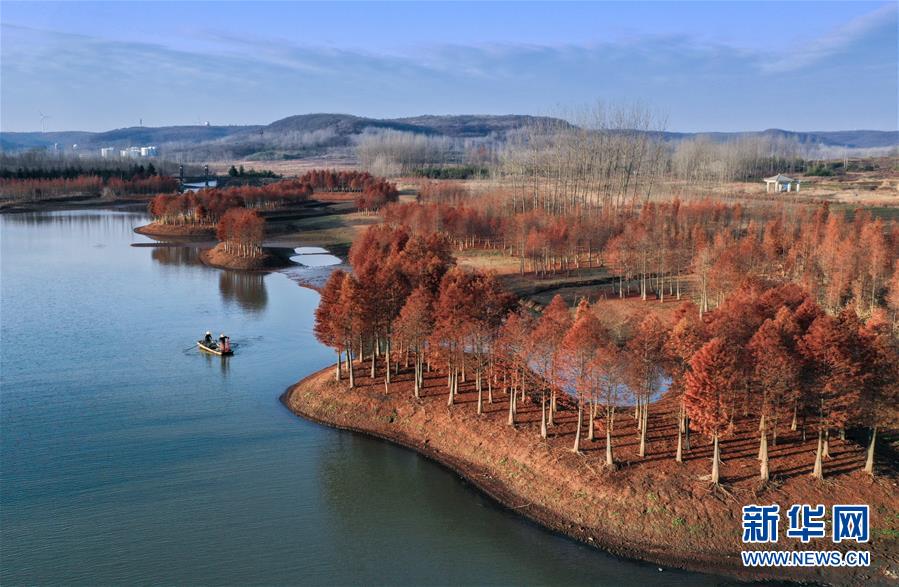 初冬之际,在江苏盱眙天泉湖畔,连片的红杉呈现鲜艳的色彩,构成独特的景观画卷。天泉湖在生态建设时种植红杉,目前已成为有名的生态旅游目的地。