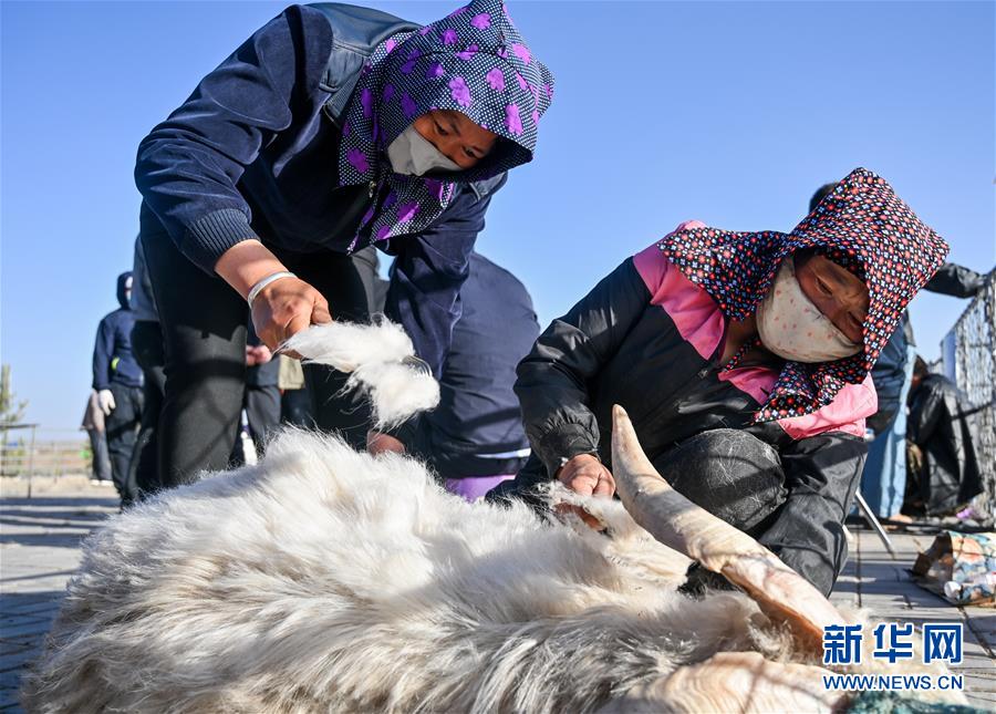5月11日,内蒙古鄂尔多斯市鄂托克旗棋盘井镇乌仁都喜嘎查的牧民在给山羊梳绒。 入夏以来,内蒙古鄂尔多斯市鄂托克旗棋盘井镇乌仁都喜嘎查周边的草原迎来剪羊毛、梳羊绒的季节。牧民们将羊群赶到固定地点,用剪刀和抓绒梳为山羊脱掉毛绒“大衣”。 新华社记者 连振 摄