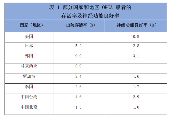 近年来,我国心脏骤停的发生率明显增加,并成为青壮年人群的主要杀手,发病率已渐近发达国家水平,但整体抢救水平远低于发达国家和地区,心脏骤停患者神经功能良好的出院存活率仅为1%左右。
