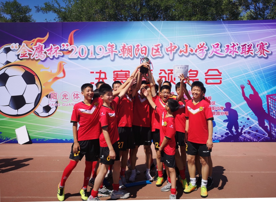 “发展振兴足球事业关键是把路子走对,长期努力、久久为功,注重打好群众基础、夯实人才根基,从娃娃抓起,从基层抓起,从基础抓起,从群众性参与抓起。”人大附中朝阳学校走出了一条体育兴校之路,学校先后获得“朝阳区足球特色学校”、“朝阳区阳光足球教学实验校”、“北京市校园足球特色学校”、“全国青少年校园足球特色学校”等荣誉称号,在朝阳区和北京市组织的各级各类比赛中累计取得了25个荣誉奖项。2019年,人大附中朝阳学校成为“朝阳之星”——青少年校园足球训练营分营成员学校和训练分营承办学校。