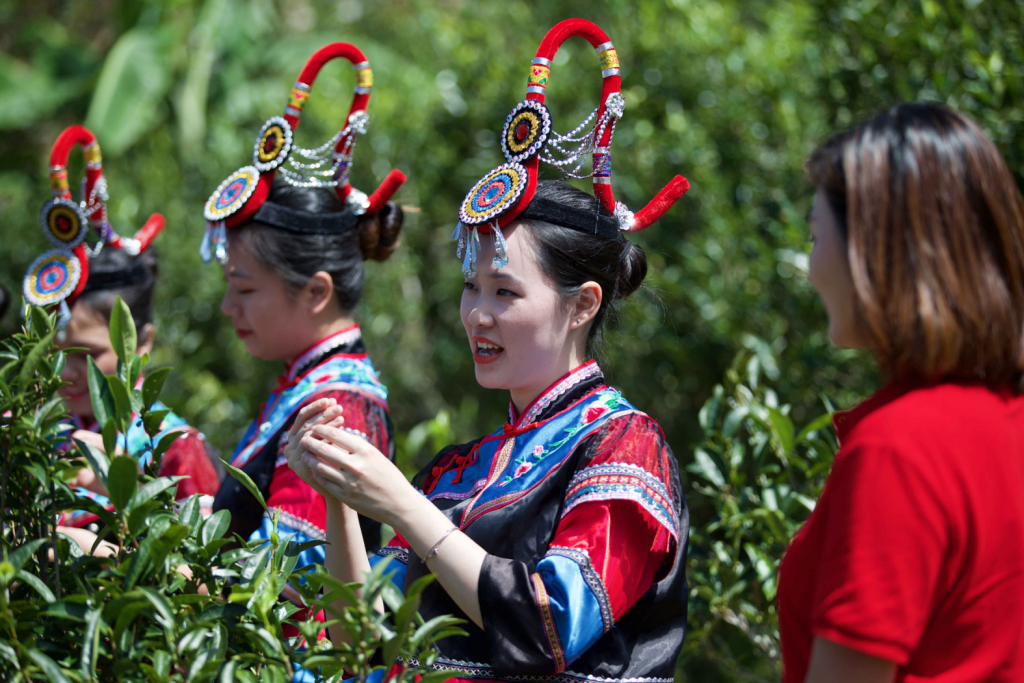 谭江镇凤坪村畲族姑娘采茶(程晓丹摄)