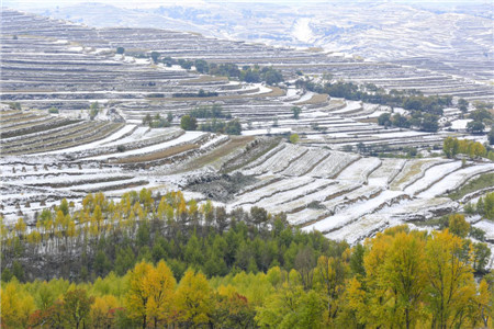 上图:今年10月15日,甘肃会宁丁沟镇冰雪覆盖,这是当地入秋以来的第二场降雪。(陈坤/人民图片)
