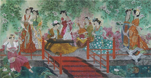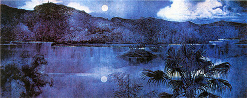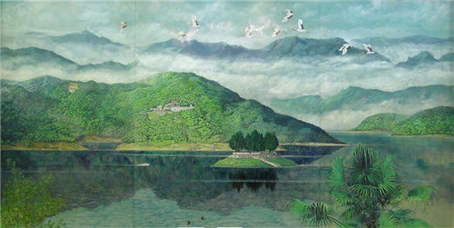 人民大会堂台湾厅巨型漆壁画1994年《双潭映月》(3.70米×8.70米) 陈文灿主持创作