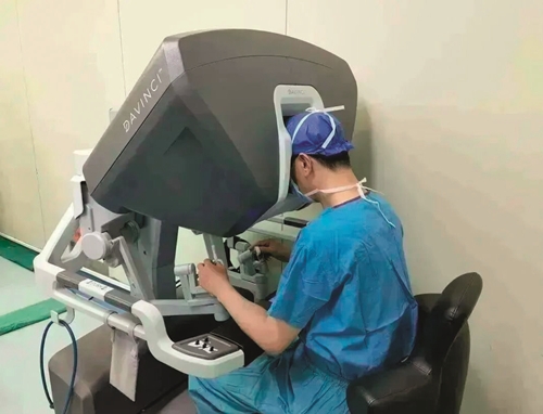 凌云鹏在进行机器人辅助全动脉化冠脉搭桥手术。