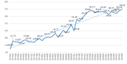 普惠金融服务体系和能力持续提升。国家金融监管总局、中国人民银行联合发布的《银行业保险业普惠金融高质量发展实施方案》提出银行保险机构要坚持又普又惠的基本原则,持续提升覆盖面和可得性,推动降低综合成本。2025年三季度,普惠金融-小微服务指数结果显示,金融服务可得性和质量均有所上升。其中可得指数运行至203.47点,环比增长3.02%;质量指数运行至111.76点,环比增长0.31%。