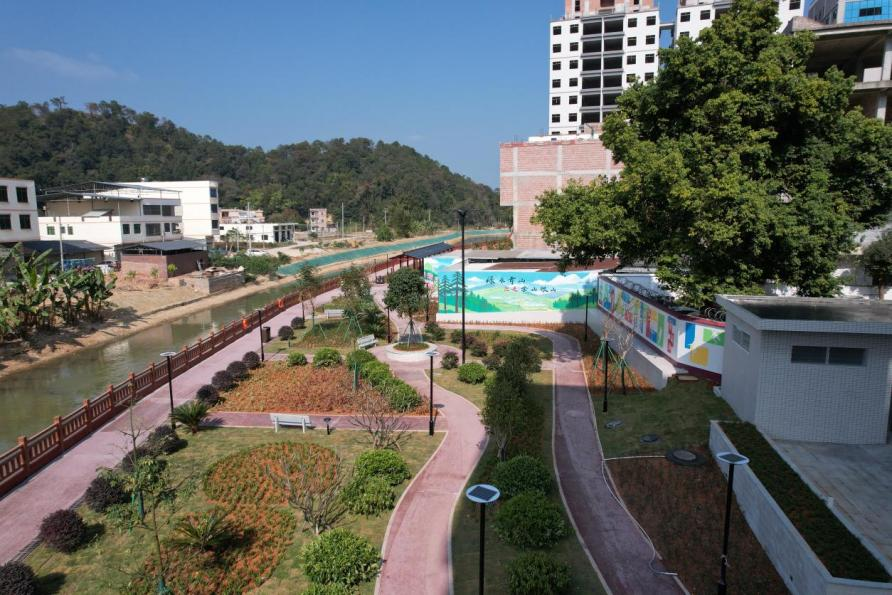 诗洞镇始终将绿色生态作为宜居底色,让群众在推门见绿中享受高品质生活。占地约500平方米的生态小公园已完成规划平整,即将成为居民休闲漫步的“口袋花园”;全长1公里的碧道建设进展顺利,石砌护坡与草皮护岸已然成型,后续铺装与绿化将打造集防洪、休闲、观光于一体的亲水生态廊道,“水清岸绿、人水和谐”的愿景正逐步变为现实。