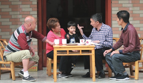 孙开林(右二)和村民在一起,了解生产生活情况。