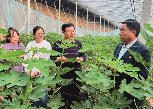 郑寨子村村干部们在查看无花果生长情况。(图/徐峰)