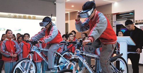 皮山县青少年科普馆由三峡集团援建,已成为当地青少年乃至广大群众的“科技乐园”。艾克拜尔江介绍,科普馆于2024年正式投入使用,内设现代科技、航天探索、地震体验等六大展区,其中三峡大坝虚拟骑行体验区最受欢迎。