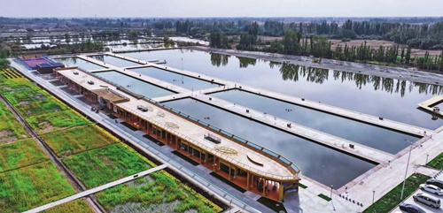 东营援疆以“疆南渔村”为核心,探索出以赛兴产、以文塑旅、以旅促农的农文旅体融合发展模式。图为位于疏勒县塔孜洪乡尤喀克其盖图克村的“疆南渔村”项目。
