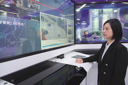 彭菲观看大模型演示。