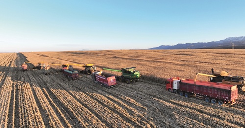 通过强化科技支撑,中农利邦努力提升种植效益。中农利邦投资1.6亿元,联合新疆农科院等科研院所组建种植和水务管理团队,种、肥、耕、管、收全过程科学规划管理,全程机械化耕作、无人机植保监控,测土配方、水肥一体,极大地提高了粮食生产效益。