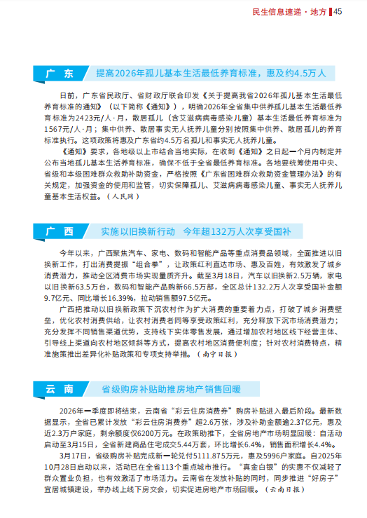 提高2026年孤儿基本生活最低养育标准,惠及约4.5万人