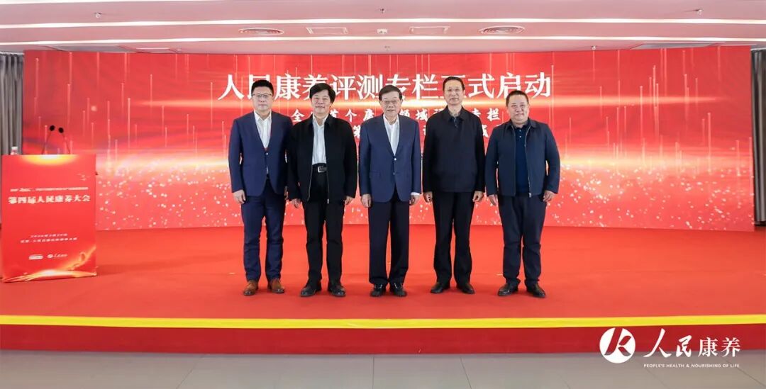 上图:全国首个康养领域评测专栏——人民康养评测专栏启动,李伟、郑功成、胡占凡、杨明方、夏连鲲参加启动仪式。