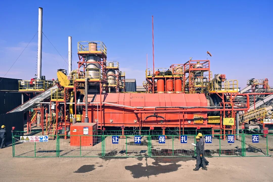 “过去这些让人头疼的危险废物,如今成了生产线上的‘原材料’。”新疆中建环能北庭环保科技有限公司副总经理张富强介绍,公司目前具备20万吨的年处置能力,油回收率可达80%以上。黑黢黢的含油岩屑被送入自动化生产线,通过热解吸、热相分离等先进工艺,提取出的乳化油被油田回收利用,作为油田钻井液的主要来源,剩余固体则成为水泥等建材的原料,实现了资源的循环利用。