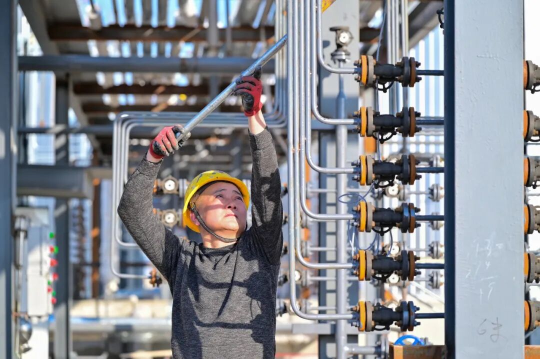 3月23日,在位于吉木萨尔县的新疆中建环能北庭环保科技有限公司内,技术人员正在对含油废物资源化处置生产线进行巡检。记者陶维明 摄