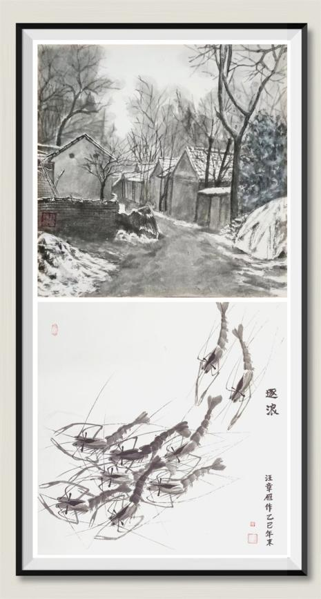 汪章雁在水墨虾蟹题材创作上亦有独到建树,师法传统而自出新意。他的水墨虾蟹作品笔墨简练、灵动自然、极富生命活力,是传统花鸟写意在当代的鲜活延续与个性表达。