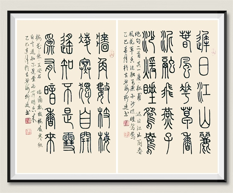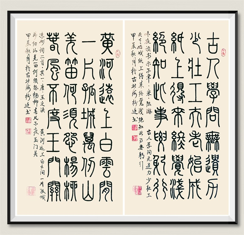 一次偶然探索,张树廷发现篆书与自己的心性十分契合,上手很快,入帖轻松,出帖自然,几经反复,愈发心手双畅。于是,他开始有意识地钻研小篆的笔法、笔意,逐渐向小篆靠拢,确立了以小篆立根,开启了攀登小篆的高峰之路。