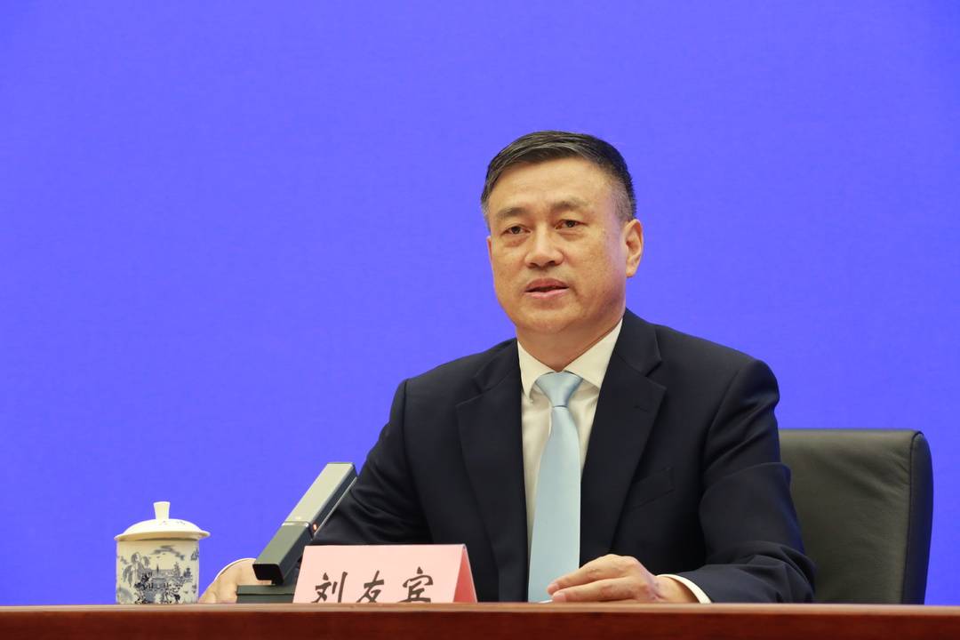 2023年10月,时任生态环境部新闻发言人的刘友宾主持例行新闻发布会。封面新闻记者代睿摄影