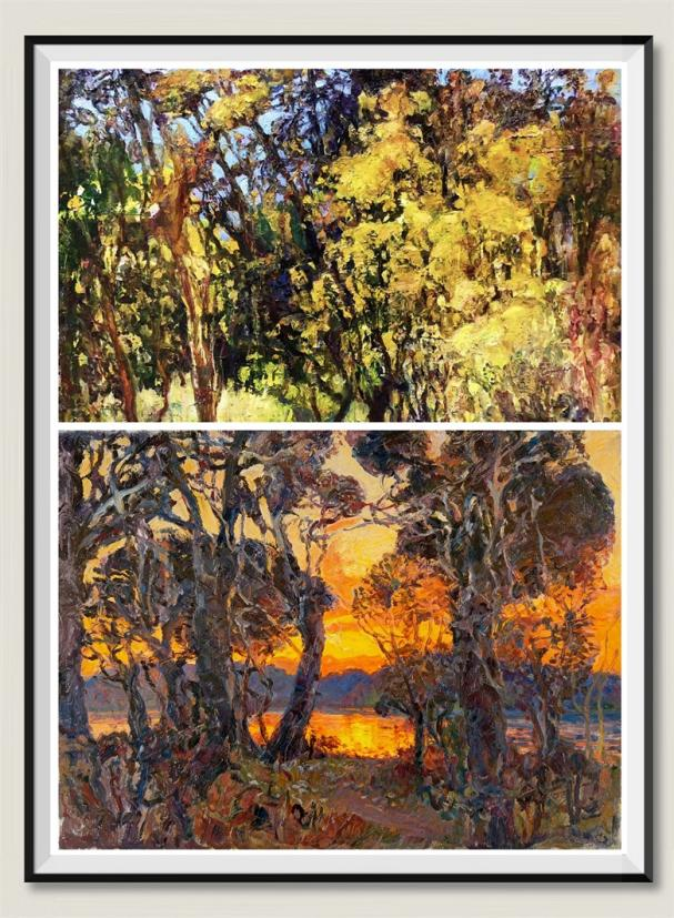 王玉峰借助对自然景观的细腻描绘,营造出宁静且壮阔的氛围,淋漓尽致地展现了自然之美。他的油画创作主题连贯统一,表现形式丰富多样,蕴含的情感充沛丰盈,创作手法灵活多变。其作品呈现形式兼具个人特色与时代特征,创作出了大量具有鲜明个性及当代审美意趣的油画作品。