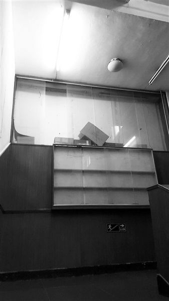 风入松书店原址楼梯间,过道的橱窗里只剩下几只曾经装书的箱子