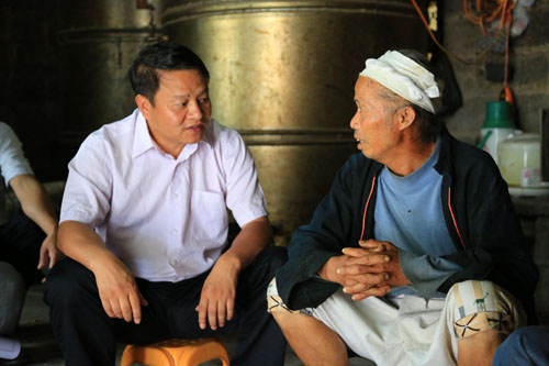 荔波县委书记尹德俊与当地瑶寨农民了解扶贫事项