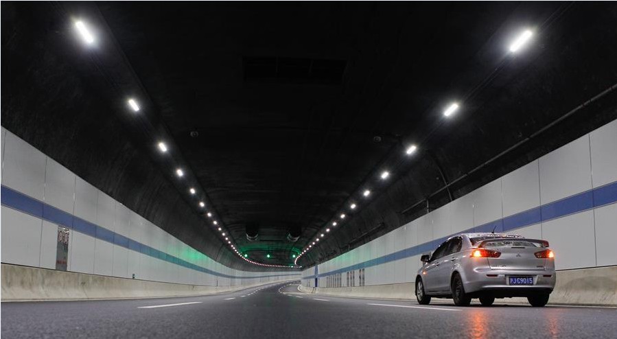 9月7日,内部工作车辆从即将通车的长江路隧道内经过。