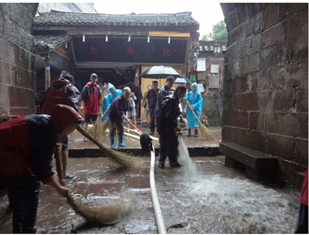 据了解,暴雨导致凤凰县受灾人口达19.8万人,经济损失12亿元。为尽快恢复古城景区营业,从7月16日开始,凤凰县组织机关干部、旅游商会、志愿者、凤凰古城旅游公司员工万余人进入古城,对受灾地段清理垃圾淤泥、进行消毒防疫。在全国各界爱心人士的帮助下,凤凰古城爱心涌动,截至7月17日,全县爱心捐赠突破100万元。