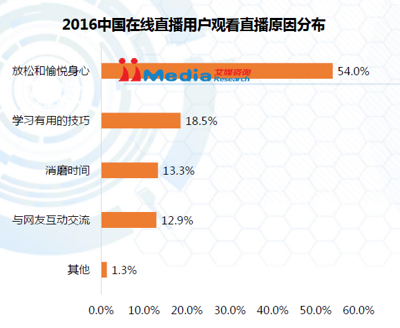 用户需求旺盛是直播兴起的内在动力。用户为什么热衷于观看直播?主要是因为娱乐需求不断上升。