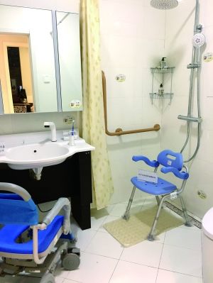 老年人居所的卫浴间,需要铺置防滑材质的地砖,另外抗污性也要强,易清洁的墙地砖可以减少老年人的打扫负担。浴室柜的设计需要多方面考虑,老人站立时,80厘米是浴室柜的舒适高度,可以减少腰部的负担,而且水不容易流向肘部。深度空间上需要达到60厘米。市面上一些可以调节的浴室柜,可满足不同身高的老人进行日常清洁需要,无论是站立,还是坐轮椅,无论是洗手,还是洗头发,都可以将洗漱盆调节到合适的高度。智能马桶的使用让老人的生活更加惬意:清水冲洗、自动烘干、垫圈加热、抗菌除臭。而专为老年人或行动不便者设计的坐式淋浴器既节水又便捷,尤其适合心脏病患者。针对老年人怕冷的问题,可以采用恒温龙头。此外要在卫浴间增加入浴扶手、淋浴座椅以及浴缸内防滑小凳。 张丹/辑