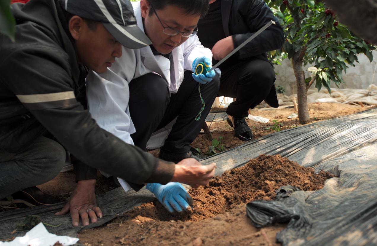 除此之外,田琨博士带领团队也在大连瓦房店市建立了 “技术应用示范基地”,在大连樱桃种植基地利用这项新技术进行推广应用,获得了令人意想不到的成功。团队利用技术成功解决了当地土壤板结的情况,疏松了土壤,增加了土壤有机质含量,同时恢复了根系微生物环境,蚯蚓随处可见,毛细根数量也大量增加,改善之后增强了树体的免疫力,促进了营养成分的吸收。同时,协助基地农户精心培育出高品质樱桃,经国际第三方权威机构SGS检测,樱桃果实无任何农药残留、无有毒有害重金属残留,营养成分高,是真正的生态有机水果,品质可以说达到了世界水平,也达到了出口欧盟的标准。当地不少企业负责人和专家都对此给予了高度此评价,“他们的技术水平不差于日韩的技术,是国内少有的高新技术,在同等条件下化肥用量大大降低,同时果形美,个大,肉质鲜嫩,糖酸比佳,口感甜而不腻,可以大范围推广使用。”