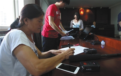 昨日,朝阳法院开庭审理“以房养老”抵押房产后被贱卖案。原告高女士庭审后在笔录上签字。