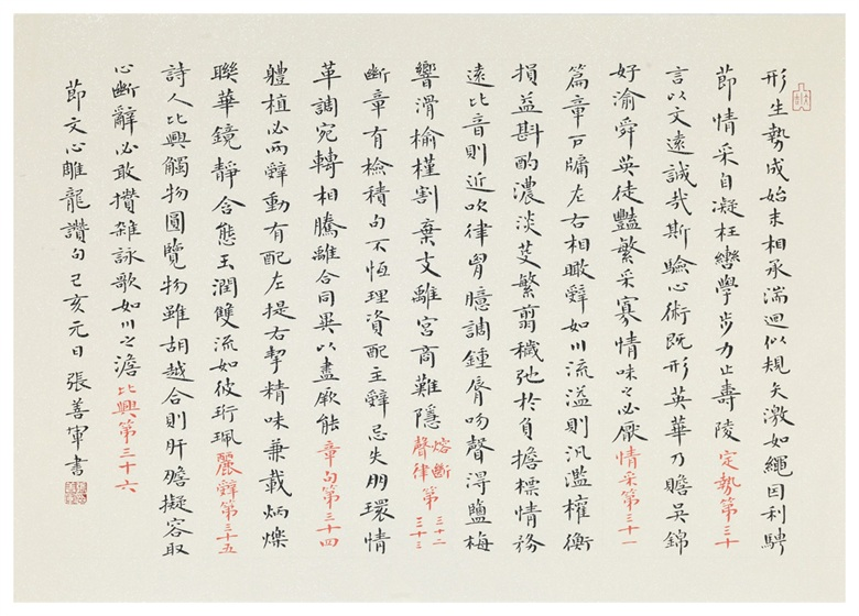如果说,早年的张善军在田蕴章的激励中奋起直追,临遍了诸家楷书法帖,“用最大的功力打进了传统”,夯定了坚实的书法基础,那么,学习吴玉如、神会吴玉如,则使张善军开阔了视野,并形成了独立的思辨意识。