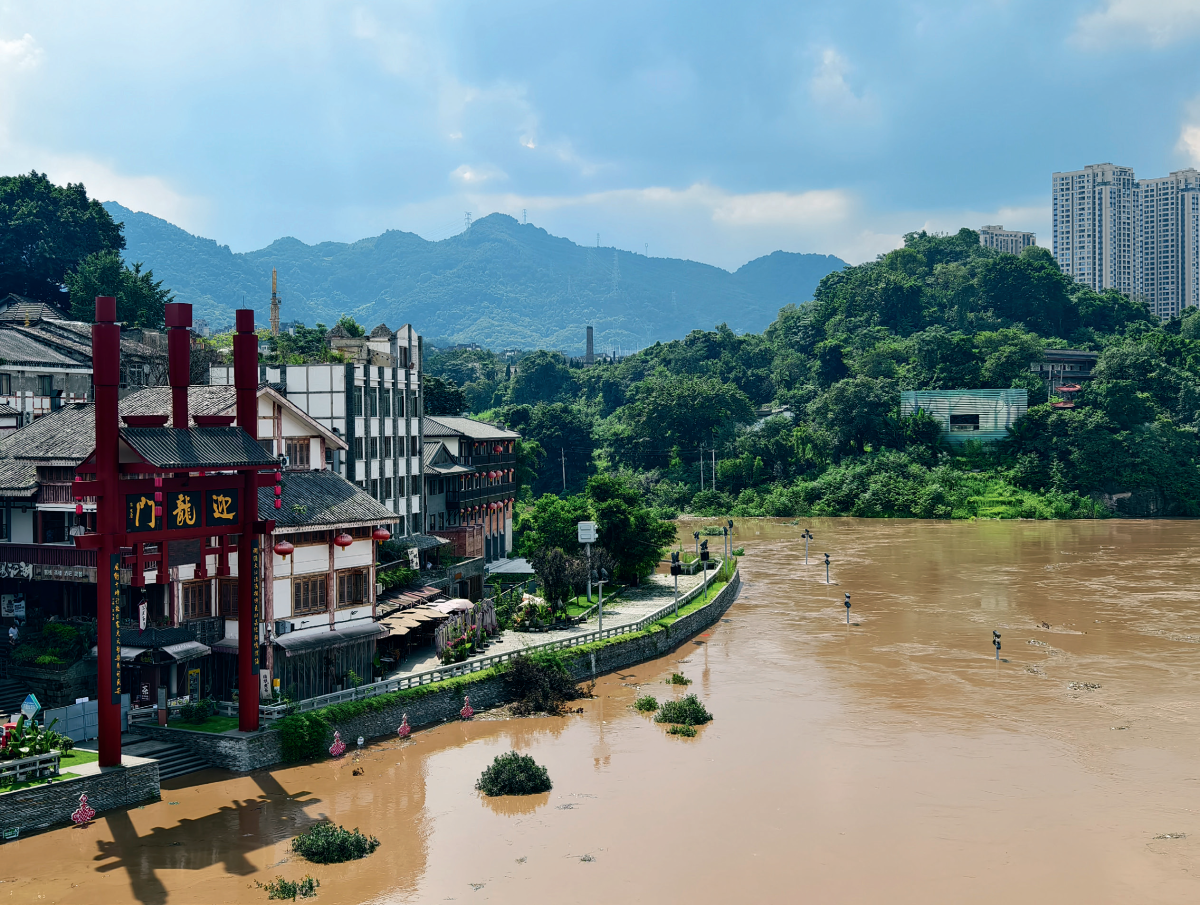 ▲今年汛期嘉陵江洪峰通过重庆磁器口景区,因预警及时、准备充分,景区损失减少到了最低程度。