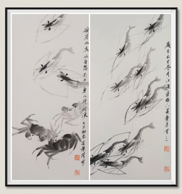左:《水墨江虾》