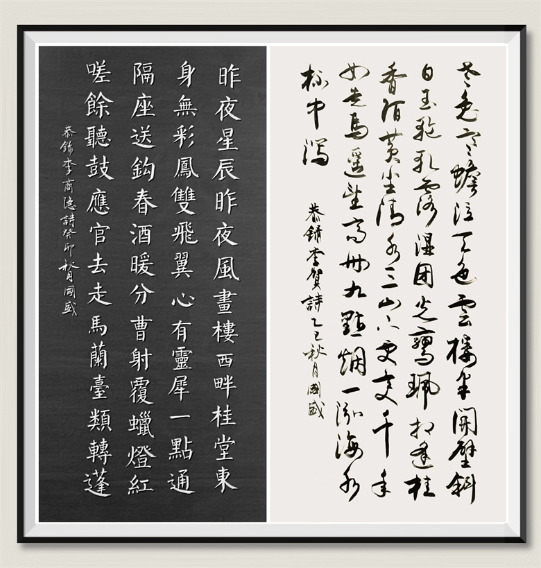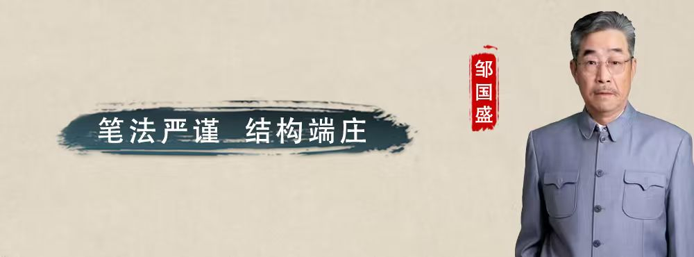 邹国盛的书法作品以唐代楷书为根基,融合了柳体、颜体、欧体等多种书体的精髓,形成了独特的艺术风格。其书法线条质朴与妍美并存,刚柔相济。除了传统的书法创作,邹国盛还参与了现代字体设计,他的艺术成就也得到了广泛认可。