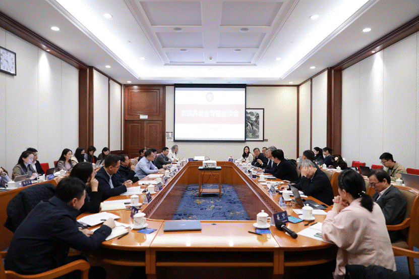 人力资源和社会保障部农村社会保险司、民政部老龄工作司负责人和国家发改委就业收入分配消费司、农业农村部农村社会事业促进司相关处室负责人出席会议听取专家意见并进行深入交流。