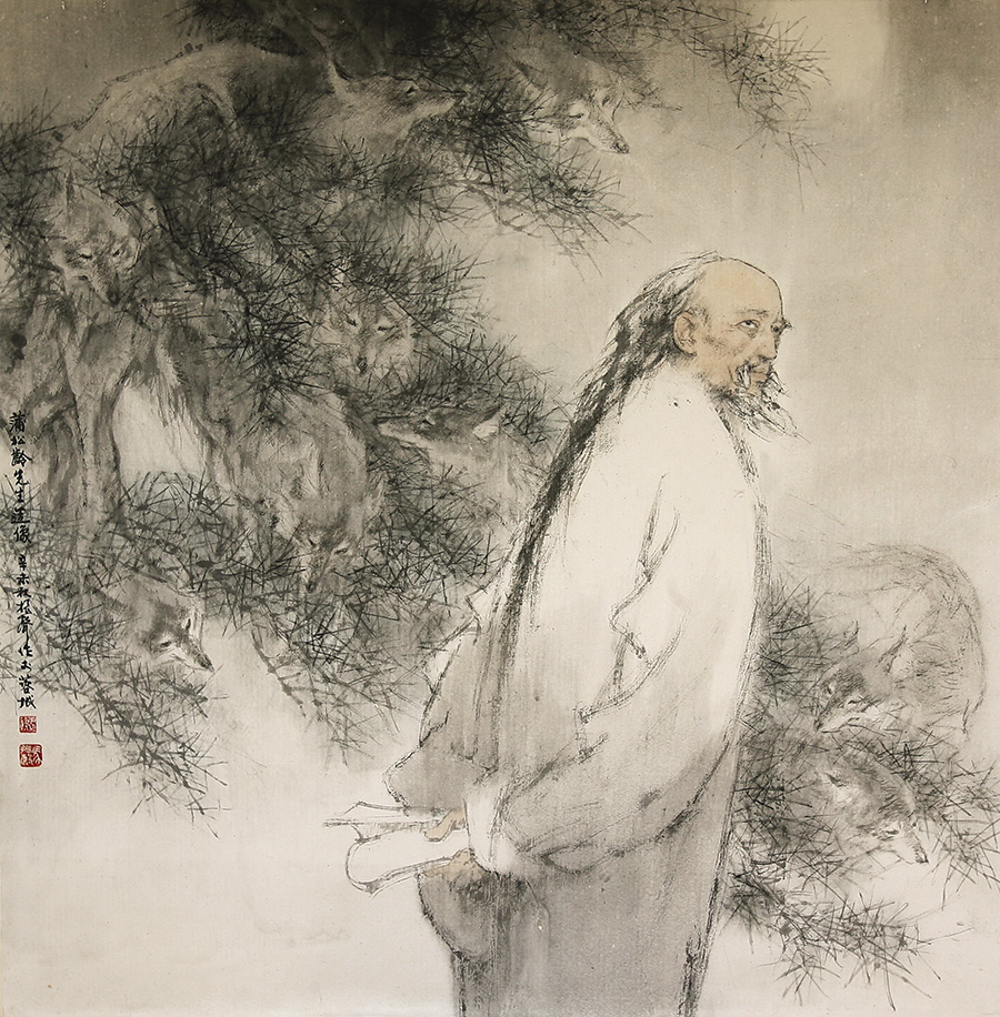 纵观马振声的作品,具有鲜明而独特的个人风格,他的作品从不同民族到古今人物,无不涉猎,水墨意韵在他笔下发挥的淋漓尽致,他除了准确的把控人物的造型之外,让观众更为惊叹的是对“神”的精确体现,以形写神,气格豪迈却不失精微,深刻描绘人物内在的精神气质,他游仞有余地驾驭生动的形象、高质量的线条、洗练的造型,如探囊取物,挥洒自如,他笔下的人物形象刻画较为简洁概括,他善于充分发挥线的作用,精炼的线条体现画面所隐含的骨气,酣畅的皴擦和墨韵处理不同的人物质感,准确表达了人物的特质与内在的精神,使人的意态灵活感人,达到形神兼备、“天人合一”的艺术境界,蕴涵着平和、安详的气氛,体现一种博大幽深的艺术思想。
