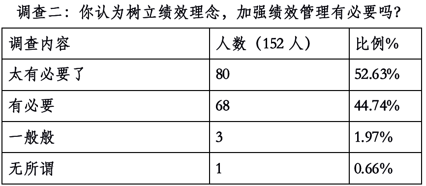 预算部门的同志们绩效理念,绩效意识显著增强。对“树立绩效理念,加强绩效管理有必要吗?”的问题的认同比例高达97.37%,对“如果你是单位领导,是否有必要用绩效的方法加强管理?”的认同比例高达90.91%,这一调查结果说明,推动预算绩效管理工作,树立绩效理念,增强绩效意识必须先行一步。