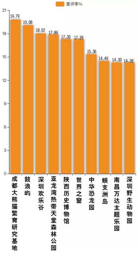 差评率计算方式:通过统计每个景区的微博讨论量(m1)、微博负面帖文量(n1)、多家旅游网站一周新增评价数(m2)、一周新增负面评价数(n2),计算出对应的加权热度(m)和加权差评(n),再看差评所占总热度的比例,最终得到差评率。