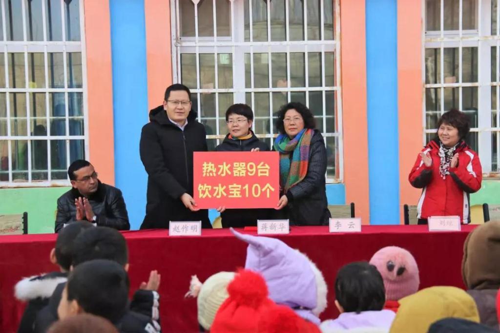 当天上午,自治区高院信访办干警与爱心团队人员前往吐外特乡库木博依幼儿园开展爱心捐赠活动。北京爱心人士、西北政法大学在读法学博士赵作明与河南安鑫电子有限公司董事长李云作为爱心团队的代表发表活动讲话,他们一致表示要争做民族团结模范,坚决维护国家统一和安全稳定,与新疆各民族群众一起共同守护、建设我们美好的家园。为答谢爱心团队对幼儿园公益事业的贡献,该幼儿园特授予赵作明与李云作“爱心使者”荣誉称号。自治区高院党组成员、副院长、“访惠聚”工作队总领队蒋新华为二人颁发荣誉证书。为保证幼儿园的饮水安全及培养小朋友个人卫生习惯,此次捐赠共向乡里的9所幼儿园1670名幼儿捐赠了9台热水器、10个饮水宝、1000瓶洗发水、1000盒水彩笔、1000盒牙膏、1000盒香皂等。吐外特幼儿园园长艾尔肯·亚森代表九所分园接受了捐赠。