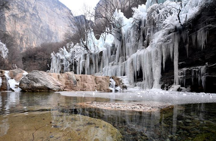 1月9日在云台山景区拍摄的冰瀑景观。 近日,受降温影响,位于河南省焦作市的云台山景区出现冰瀑景观,奇特壮美。 新华社记者 李嘉南 摄