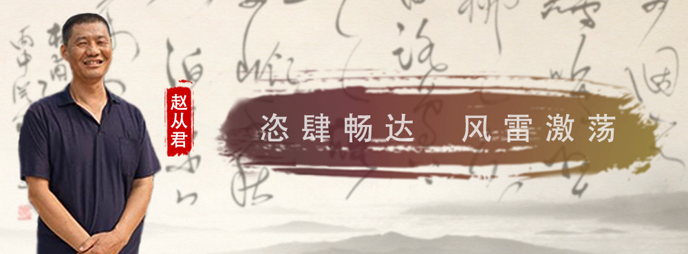 书法艺术是对精神世界的追求,绝对不是为了一字千金,当商品经济的大潮摇晃着八尺画案时,很多艺术家急急忙忙地把作品送往各地,到处兜售,艺术家“不忘初心”的那份淡泊旷达、那份高雅畅怀,渐行渐远,赵从君从不刻意迎合市场,也不为风格追求特点,他更没有试图通过自己的书法形式而大张旗鼓地从事“变革和创新”,他的书法烙迹于自己的心境,在创作实践中,他不断进行有效总结,然后,把精力投放在一点一滴的笔墨元素上,不求功名,勤于笔耕,在继承传统书法艺术的基础上,融入个人的书法风格,反而形成了卓然自立的书法面貌。
