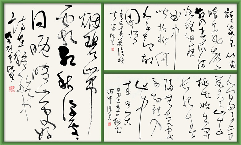 书法家爱恨欣喜,悲欢哀怒,默默渗透在抑扬顿挫的笔端,气势飞动,跌宕起伏的线条纵横于广阔的天地,或从容、或俏丽、或豁达、或纵情,自觉不自觉地融进作品,以书寄情,情景交融,诉说着书者的心境,悠悠于心,感应于理。纵观赵从君草书,有节奏强烈、气势开张的一气呵成,诠释着血脉偾张的激情、高山大海的雄浑,亦有蕴藉含蓄、和谐舒缓的明怀幽情,隐喻小桥流水的怡情雅致、远望平湖的幽静宁谧,散怀、畅怀之情在游动的笔墨中,抒情达意,产生的意境之美。
