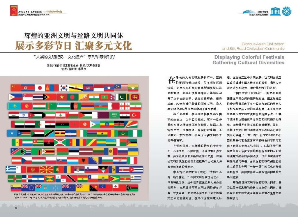 值此两场盛会举办之时,《文明》杂志全球独家首发“辉煌的亚洲文明与丝路文明共同体为主题的《展示多彩节日·汇聚多元文化》”珍藏特刊,首次全方位视觉展现亚洲以及已同中国签订共建“一带一路”合作文件的136个国家具有代表性或富有浓郁特色的节日与文化。
