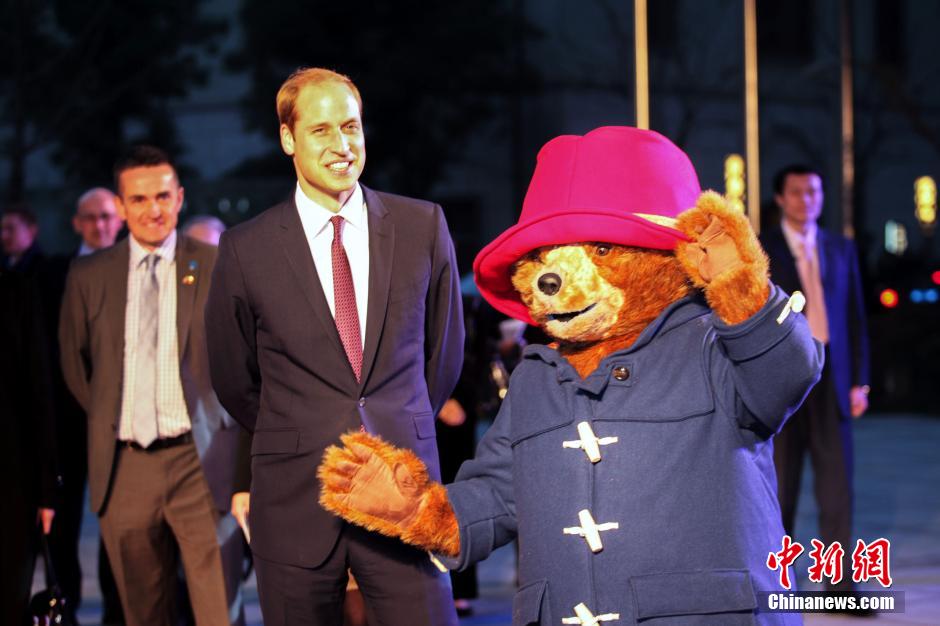 3月3日下午,剑桥公爵威廉王子与英国萌宠帕丁顿熊一起现身上海电影博物馆,助阵真人动画喜剧电影《帕丁顿熊》中国首映礼。