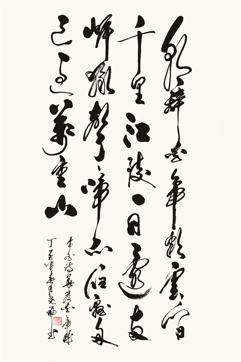 柳尧福“真草篆隶行”五体均有涉猎,尤以行草最为精通,也最为大众喜爱,柳尧福能有今日面貌,一定不是今临魏晋、明摹唐宋的朝秦暮楚,也不是三天打鱼,两天晒网的悠悠于心,更不是“朝学执笔、便自称其能”的高谈阔论,他的书法是几十年沉醉于心的刻苦磨练,是废寝忘食、夜不能寐的苦思冥想,更是居于小镇一隅不受歪风邪气侵染的纯真书法本体。柳尧福自幼酷爱书法,甚至到痴迷程度。小学的时候,由于书法写的好,老师常常在他字边上画个圈,有时候所有的字,都画了圈,老师的鼓励、家长的赞许成了柳尧福写毛笔字的最大动力,可能是血脉中自然流淌的书法基因,也可能是天赋加勤学苦练的结果,很快,青年时期,柳尧福的书法就在同龄人中脱颖而出,每逢春节,左邻右舍上门求对联,络绎不绝,亲朋好友的溢美之词让柳尧福备受鼓舞。文化大革命时期,柳尧福开始接触毛体书法,当身边的人都忙忙碌碌地投身到左冲右突的“革命”时,柳尧福也用另外一种方式努力地做着属于自己的工作,那就是陶醉在自己的书法天地中,这个时期,当身边的人都茫然而不知所措时,可以说柳尧福不仅没有浪费自己的时间,反而,书法水平得到突飞猛进的发展。学毛体书法使柳尧福打下坚实的行草书的基础,在文革那个让人无法捉摸的动荡时期,柳尧福写毛体书法,必须亦步亦趋,绝不敢越雷池半步,“不像”就是最大的错误,为此,柳尧福下了很大力气,终于把毛体书法写的惟妙惟肖、传神逼真。学习书法“像”对于书法家来说,这是必须解决的基本笔法问题,柳尧福学习毛体书法使他在驾驭毛笔时,可以得心应手、挥洒自如,学习毛体书法解决了柳尧福行草书的章法、布局、线条和笔墨。直到现在,柳尧福的行草书依然有很多毛体书法的影子,比如他创作的《录郑板桥诗词》、《王维诗/山居秋暝》等等行草书,线条遒劲隽美、纵横跌宕,章法气势磅礴、浑然天成,笔墨潇洒淋漓、纵逸奔放,守正创新中柳尧福坚守自己的书法风格,他以柔刚并举在狂放与法度中凸显一种平衡,以方圆结合在丰富笔法又鲜明个性中寻求一种自然,以正斜互用在险峻与庄重中彰显一种恢宏,以静动互藏在洒脱与内敛中强调视觉的美感。这些笔法笔意、章法布局均得益于那个年代对毛体书法的研究,同时,在那个年代,柳尧福每天在墙体上写大字,大笔、刷子、排笔齐上阵,他锻炼了身体,他也练就了一手榜书,观柳尧福的榜书《福》,结构舒博壮健,浑穆宽阔,用笔从容不迫,风神澹泊,风格雍容大度,充满个性,使人过目难忘、回味无穷。